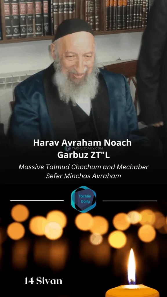 Baruch Dayan Ha’emes, we regret to inform you of the petirah of Harav Avraham Noach Garbuz, a massive talmud chochum.
