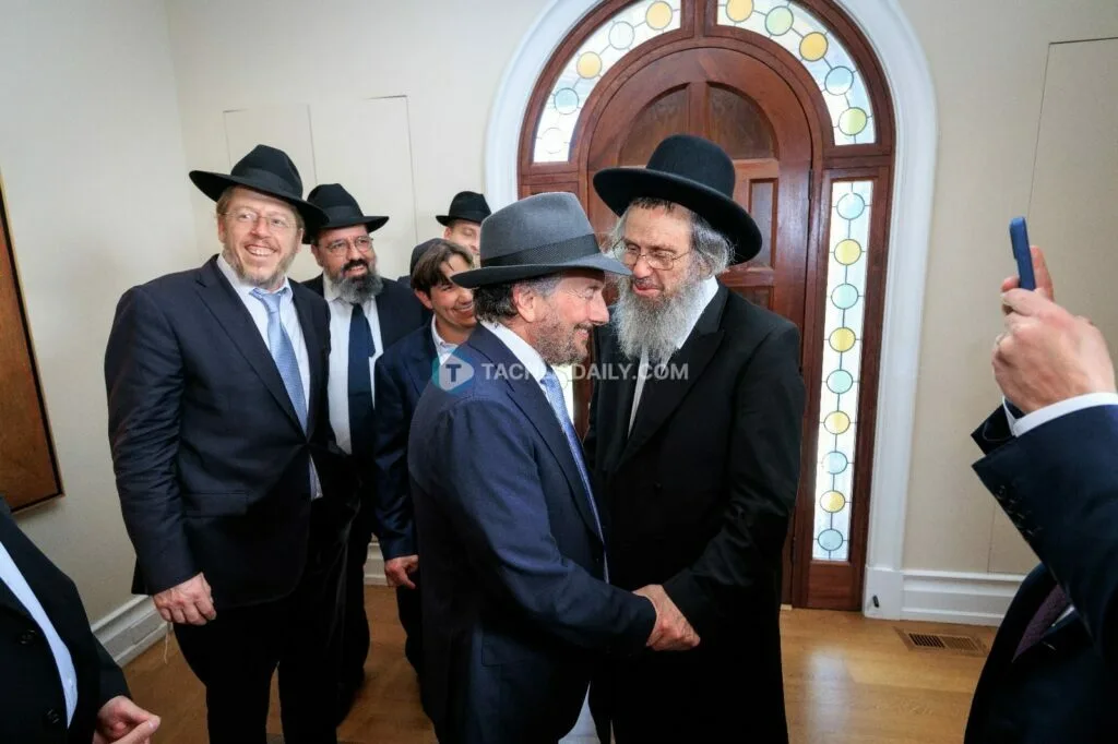 The day’s events began in the home of R’ Yitzy Fried of the Five Towns, who opened his doors to the Gedolim and addressed the assembled crowd. “The Gedolei Yisroel are going above and beyond in this campaign” he said. “If we don’t stand with them, it is not just their problem — it is a crisis for all of Klal Yisroel.”