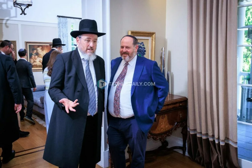 The whirlwind day continued with a private event at the home of R’ Yisrael Chaifetz, attended by a distinguished group of philanthropists. From there, the Gedolim traveled to the home of R’ Moshe Wolfson, where they were joined by his brother R’ Aharon and dozens of tomchim from across the area.