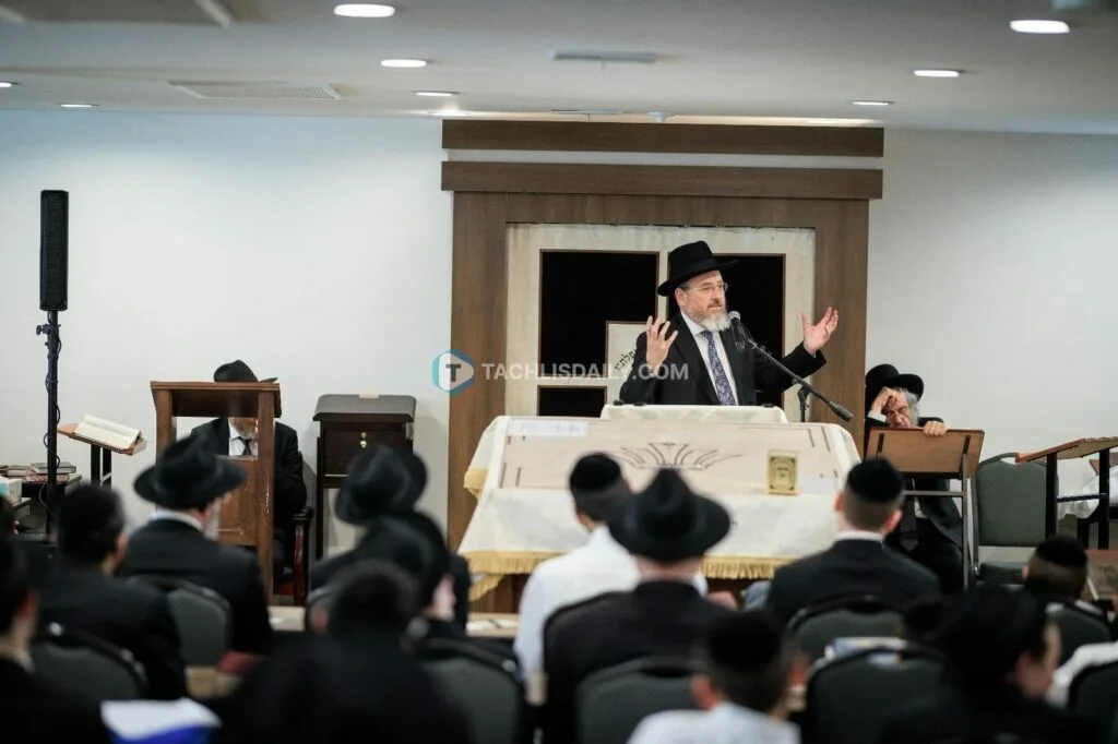 Following the event, Harav Dovid Cohen shlit”a, Rosh Yeshivas Chevron, traveled to Lawrence where he delivered an emotional address at the beis medrash of Rav Katzenstein, greeted by a large crowd of local kehilla members eager to hear divrei chizuk.