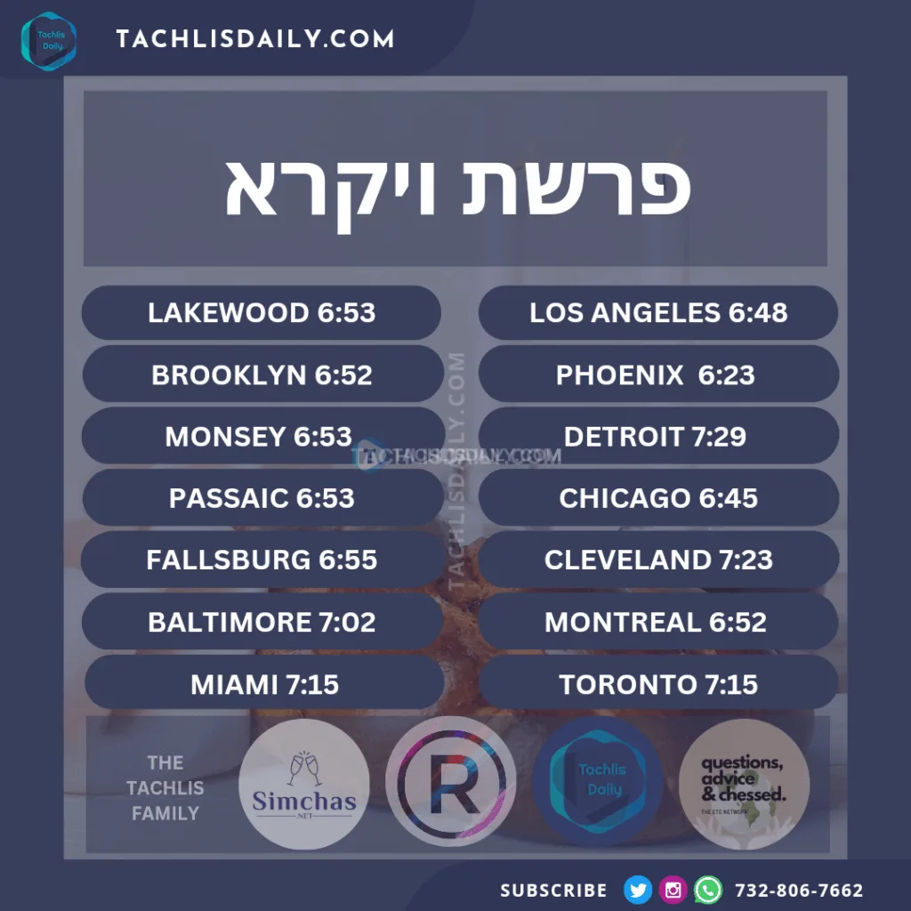 Zmanim for Erev Shabbos Parshas Vayikra